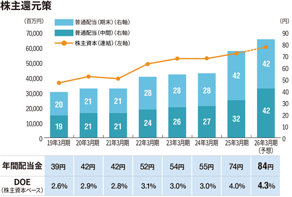 ●DOE(株主資本配当率)4%以上を目標