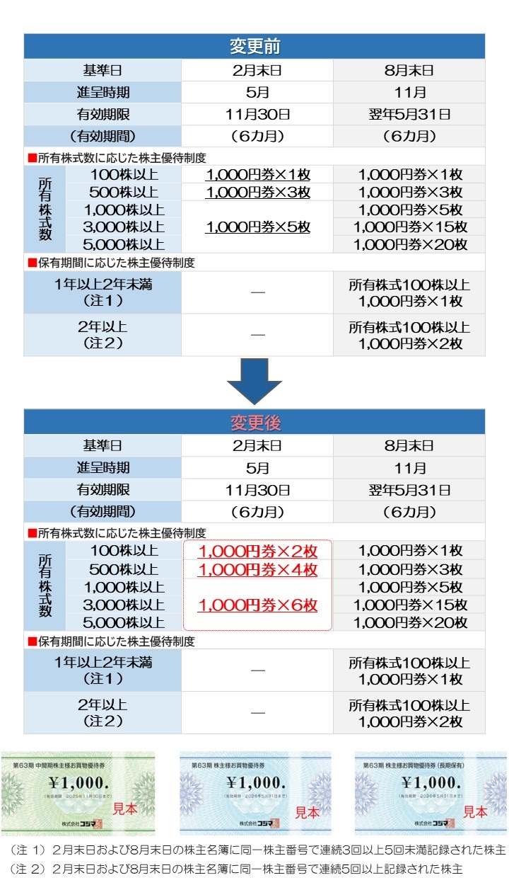 当社は、株主の皆さまの日頃のご支援に感謝するとともに、当社株式を保有していただける株主さまのご支援にお応えするために、株主優待制度を実施しております。このたび、当社株式への投資魅力をさらに高めるとともに、より一層多くの株主さまに当社株式を中長期的に保有していただくことを目指し、株主優待制度の内容を変更(拡充)いたしました。