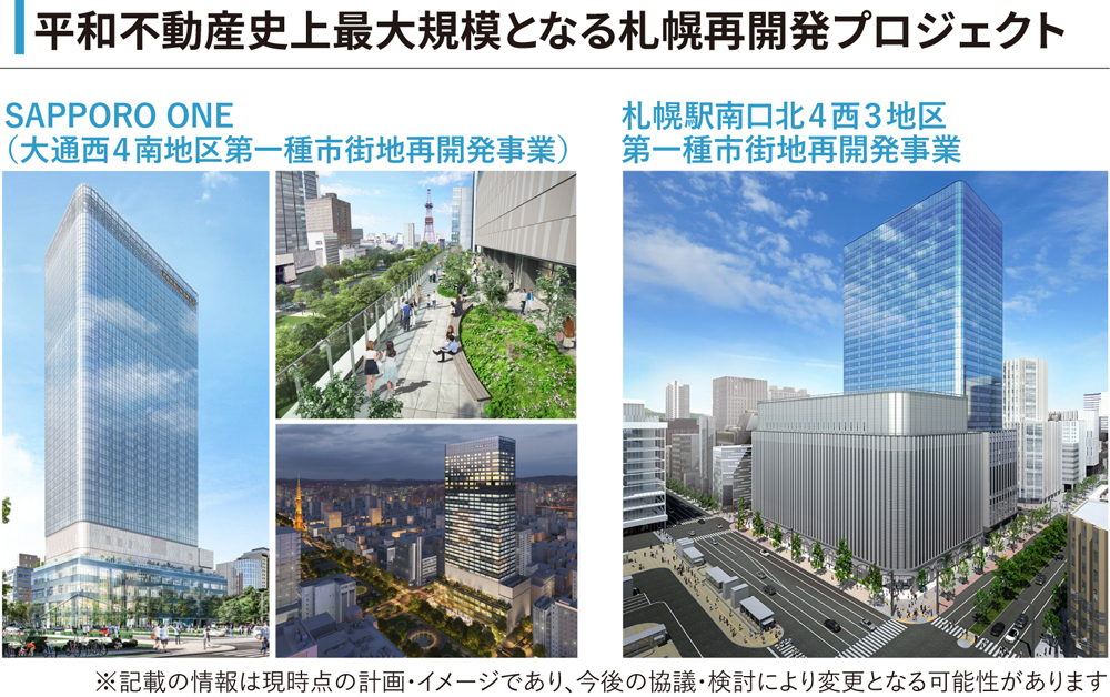- 平和不動産株式会社は、全国の主要都市において再開発事業・ビルディング事業等を展開する不動産デベロッパー。現在は2040年に向けた長期ビジョン「WAY 2040」で掲げる「場づくりの連続で非連続な成長を遂げる“Bazukuri Company”へ」の実現に向け、自社本店が所在する日本橋兜町・茅場町の街づくりと札幌再開発事業に重点的に取り組み、企業価値向上を目指す。