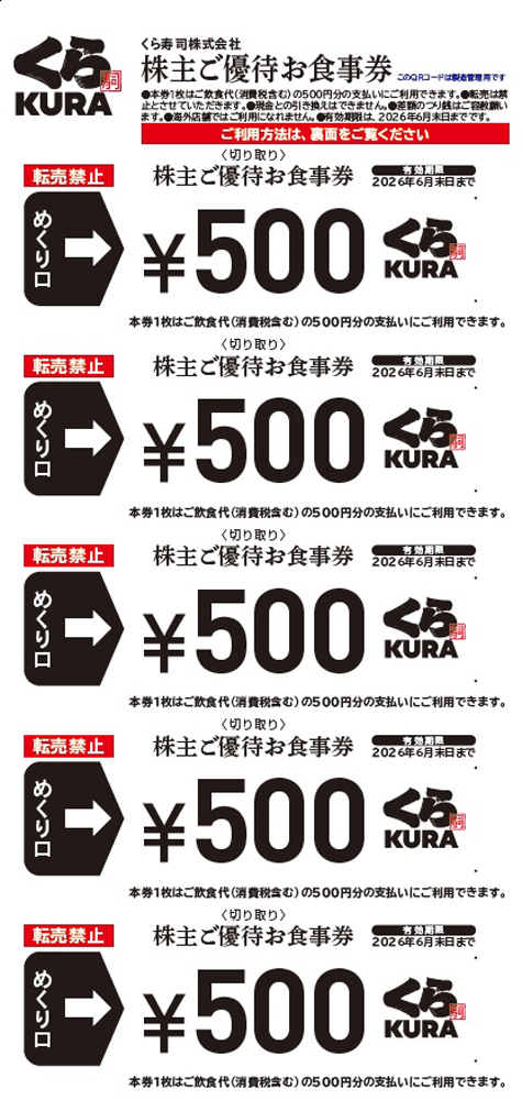8月、2月末日 | 1,000円分(8月)/2,000円分(2月)の買物優待券
