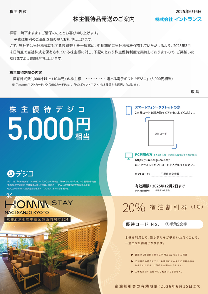 1,500円分のECサイトクーポン、1,500円分のホテル利用券